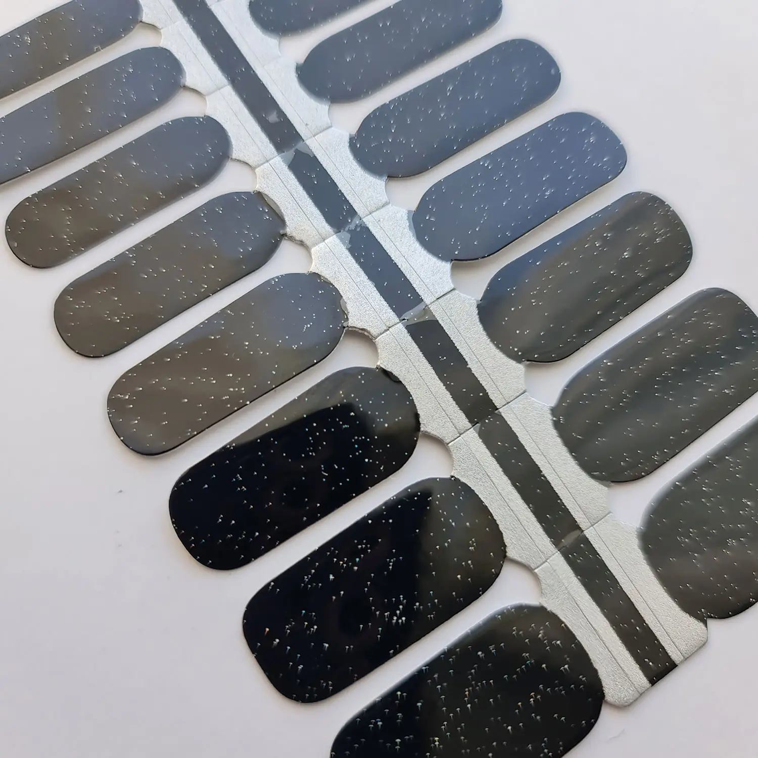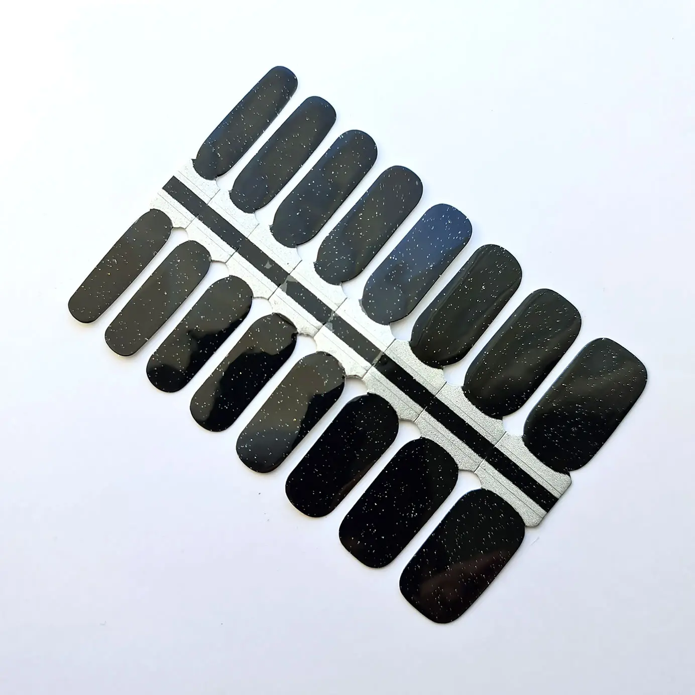 Iepakojumā ietilpst viens nagu lakas uzlīmju komplekts. Komplektā ir 16 dažādu izmēru uzlīmes.
